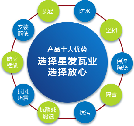公司主要产品有《星发牌》合成树脂瓦、APVC防腐耐候复合瓦、APVC发泡隔热瓦、PVC半透明瓦、PVC防腐隔热瓦、PVC防腐瓦、PVC防腐平板、PVC条纹板和ASA/PVC超耐候复合瓦等产品。产品一经推出,已被广泛应用于国内各类平改坡项目和大型工业项目,远销欧洲、亚洲、美洲和非洲等国外市场,还获选为广州亚运会、深圳大运会、四川灾后重建等工程项目的应用产品。公司在不断创新和改革的基础上,力求以更好的产品、优良的服务,用心、专心服务好每一个客户。